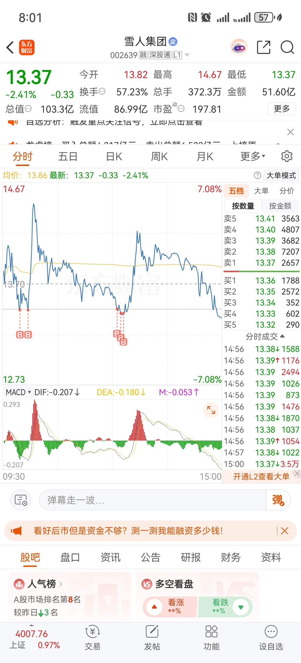 $雪人集团(SZ002639)$ 看脸了