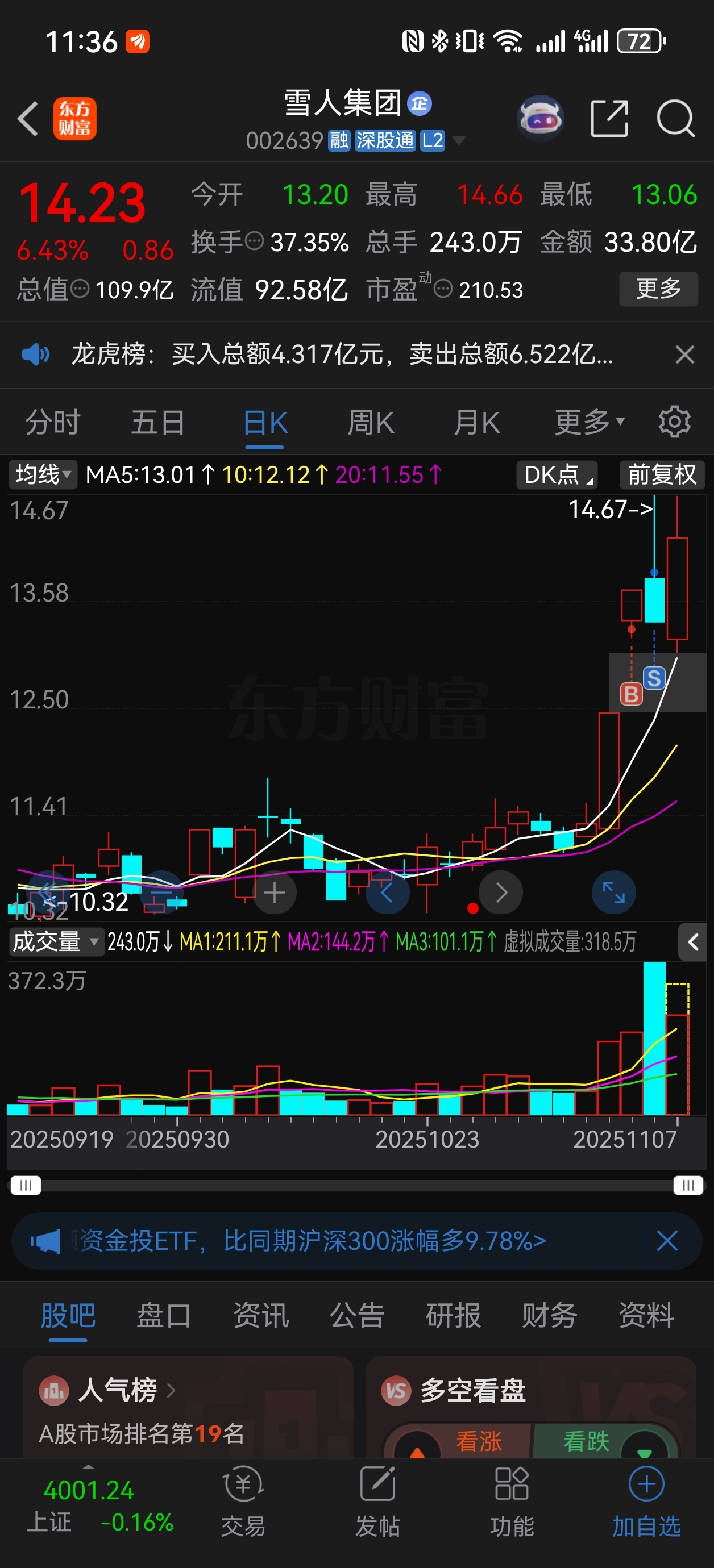 $雪人集团(SZ002639)$ 没空看盘的后果就是随便挂单卖了