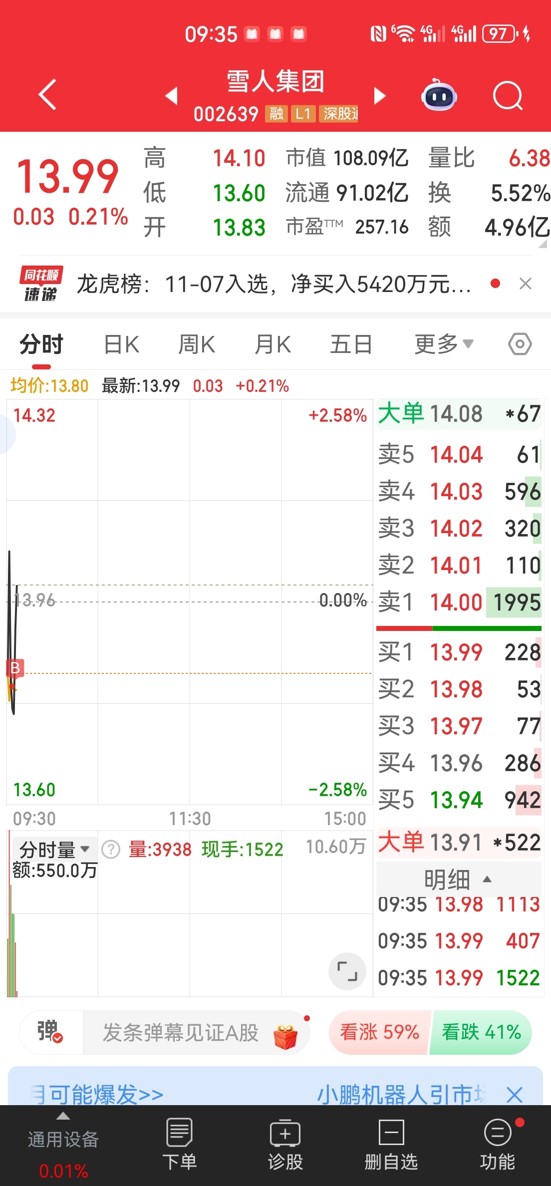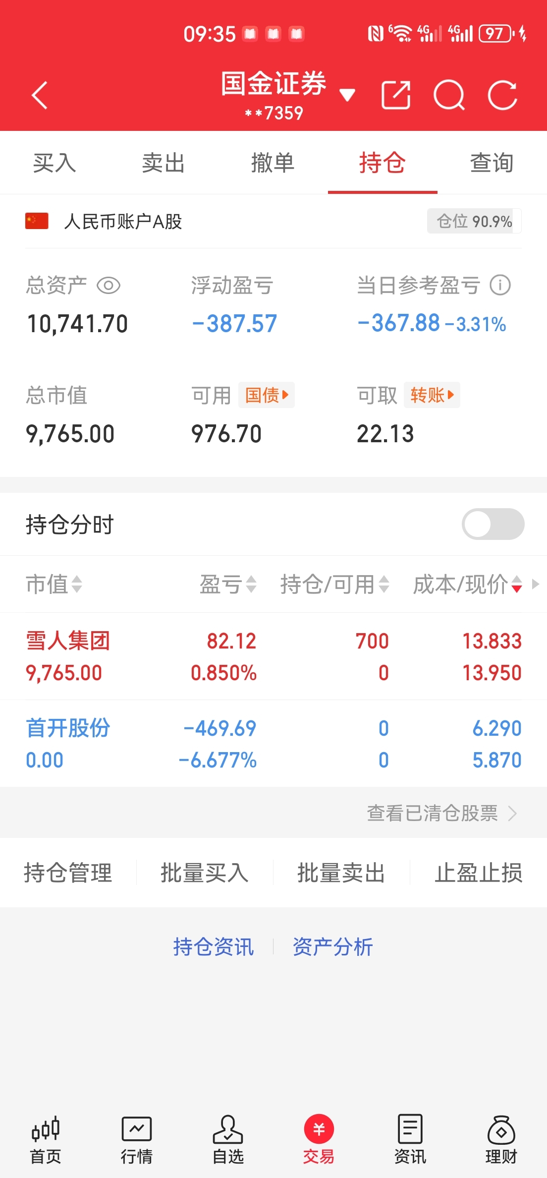 一万到一百万第15天,首开开盘开的太差割了,-1买了雪人集团