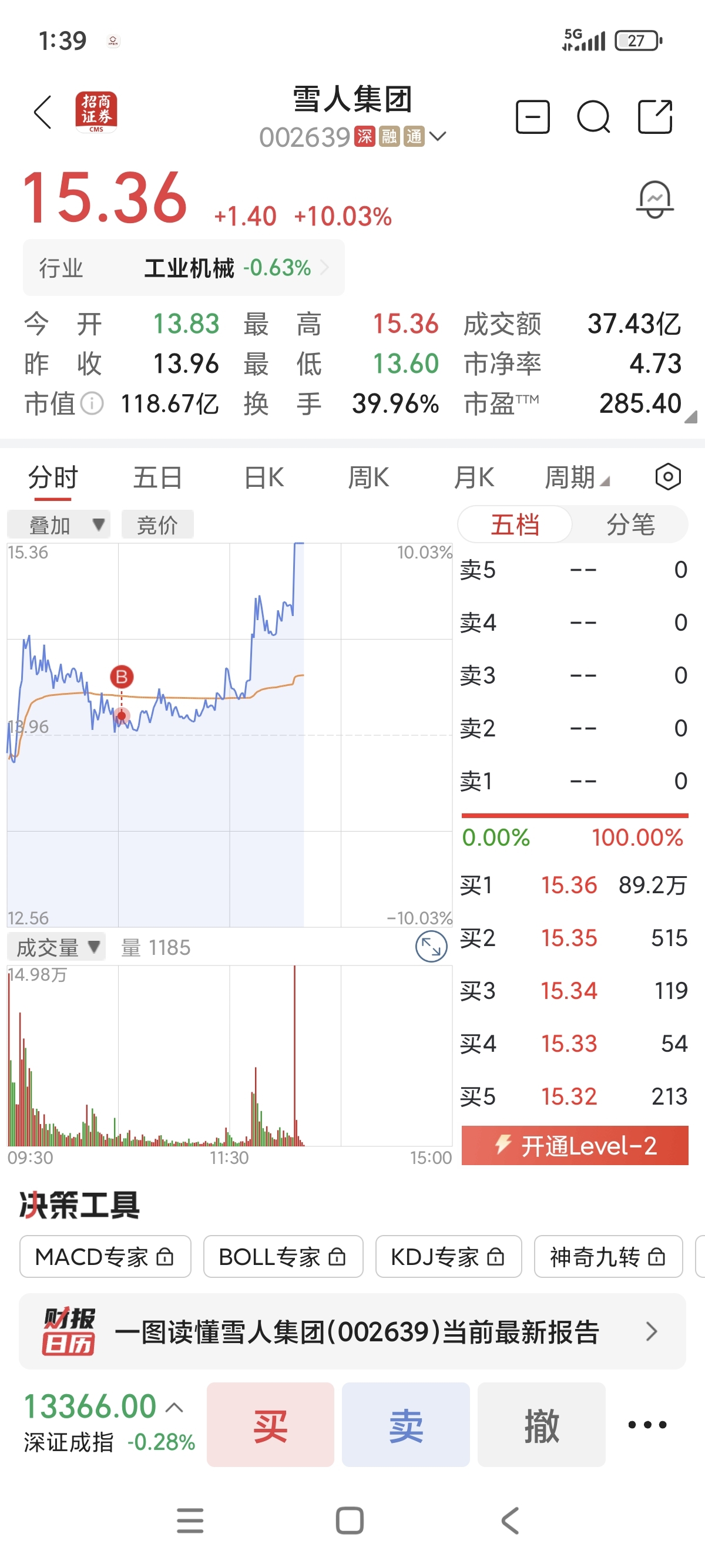 $雪人集团(SZ002639)$ 主力涨停干嘛