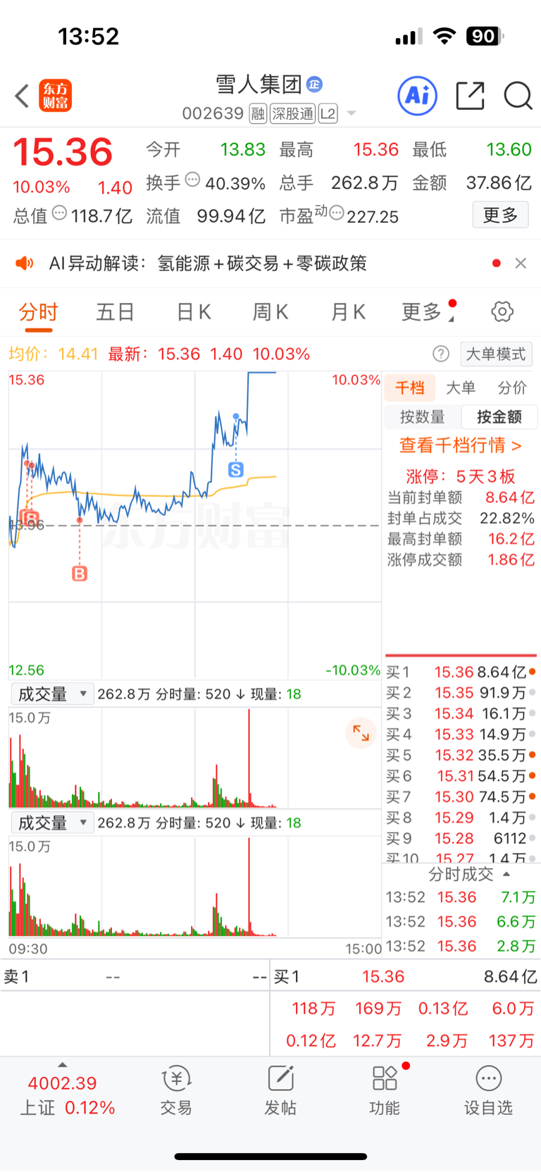 $雪人集团(SZ002639)$ 一个点卖了双杰70万来加仓雪人,7个点跑了一部分底仓。约等于没卖飞双杰
