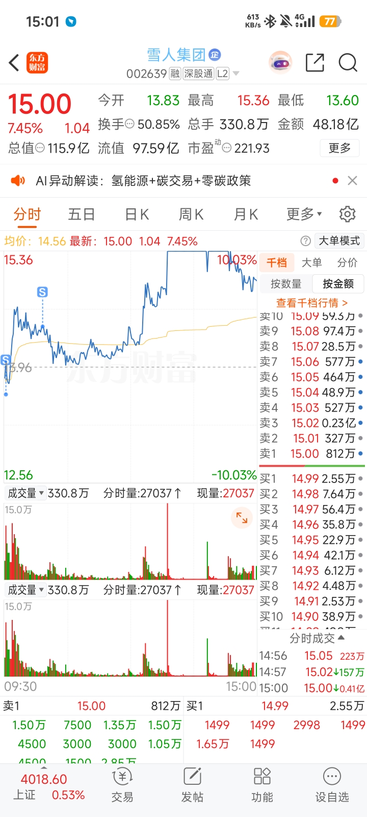 $雪人集团(SZ002639)$ 我就问一句,还有谁,一来一回少赚了12个点