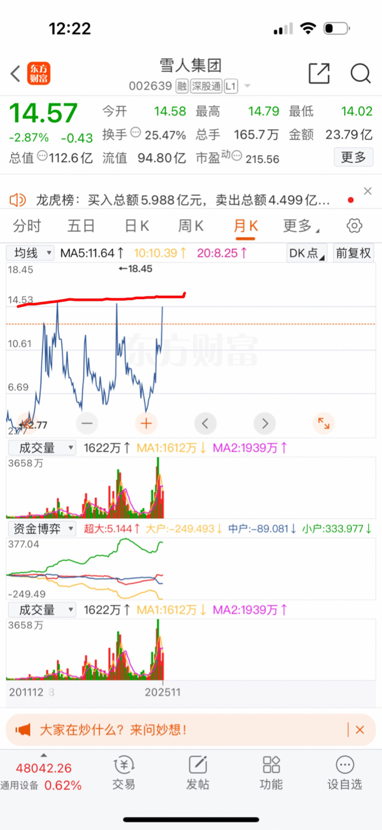 $雪人集团(SZ002639)$ 能不能过,过了就起飞,不然就完了