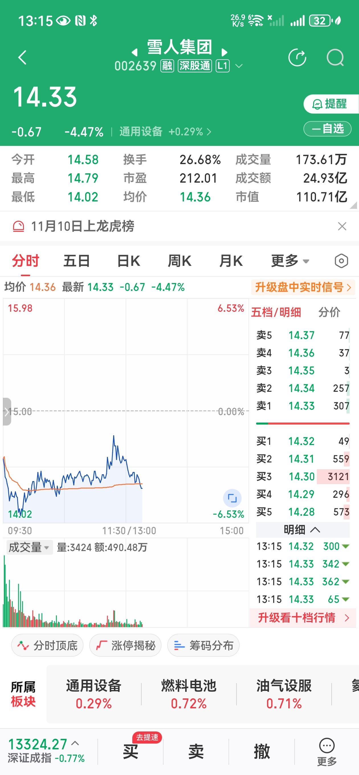 $雪人集团(SZ002639)$ 坚持不住了。转两个点走人了。