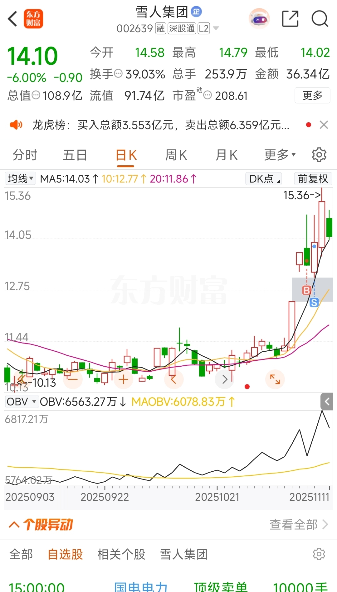 $雪人集团(SZ002639)$ 太活跃了,不敢待久,胆小咬一口就跑