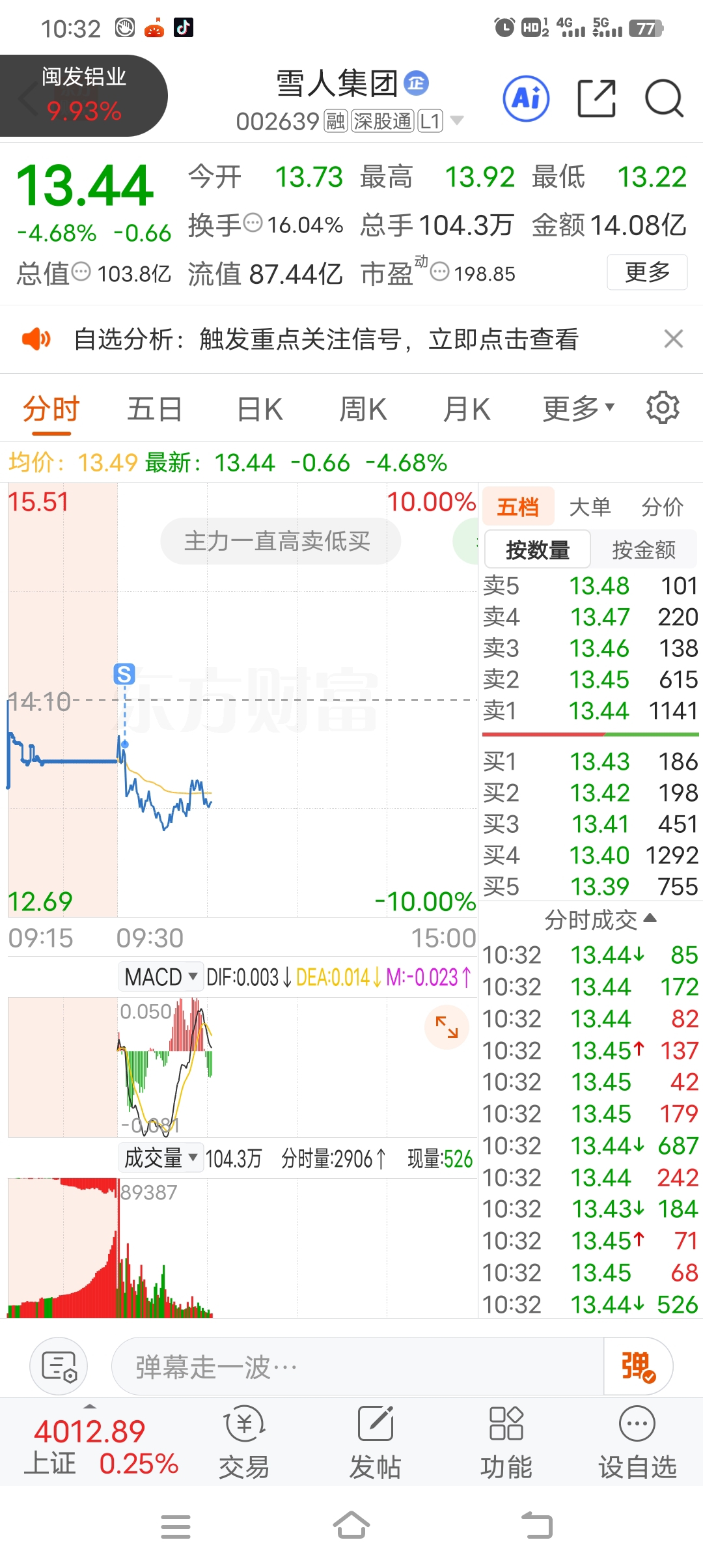 砸四你们一群小卡拉米$雪人集团(SZ002639)$