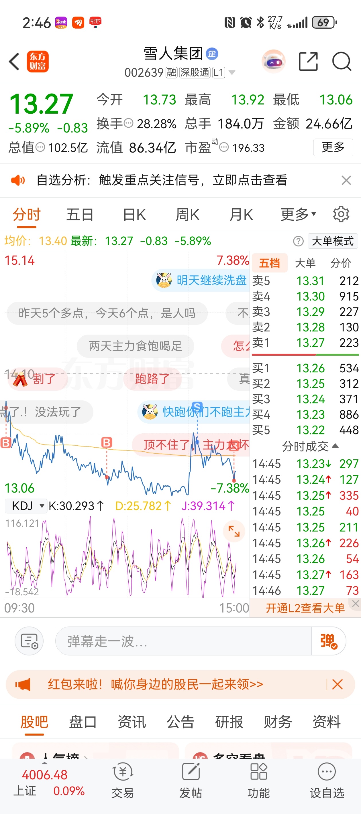 $雪人集团(SZ002639)$ 今天持续加仓中