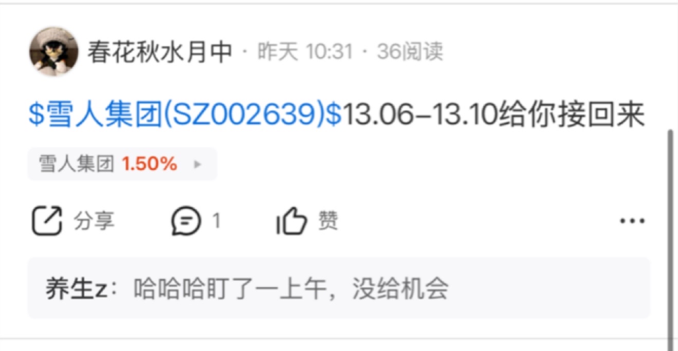 $雪人集团(SZ002639)$ 知道昨天最低为什么是13.06吗,因为我偷看了主力手机,他的成本是13.06