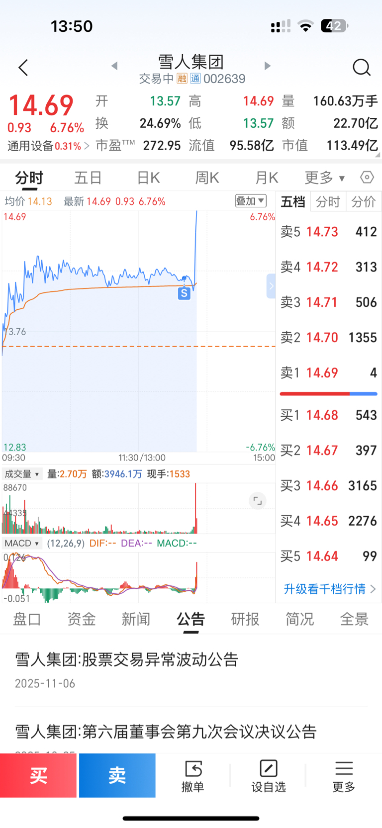 $雪人集团(SZ002639)$ 差我这三瓜俩枣直说