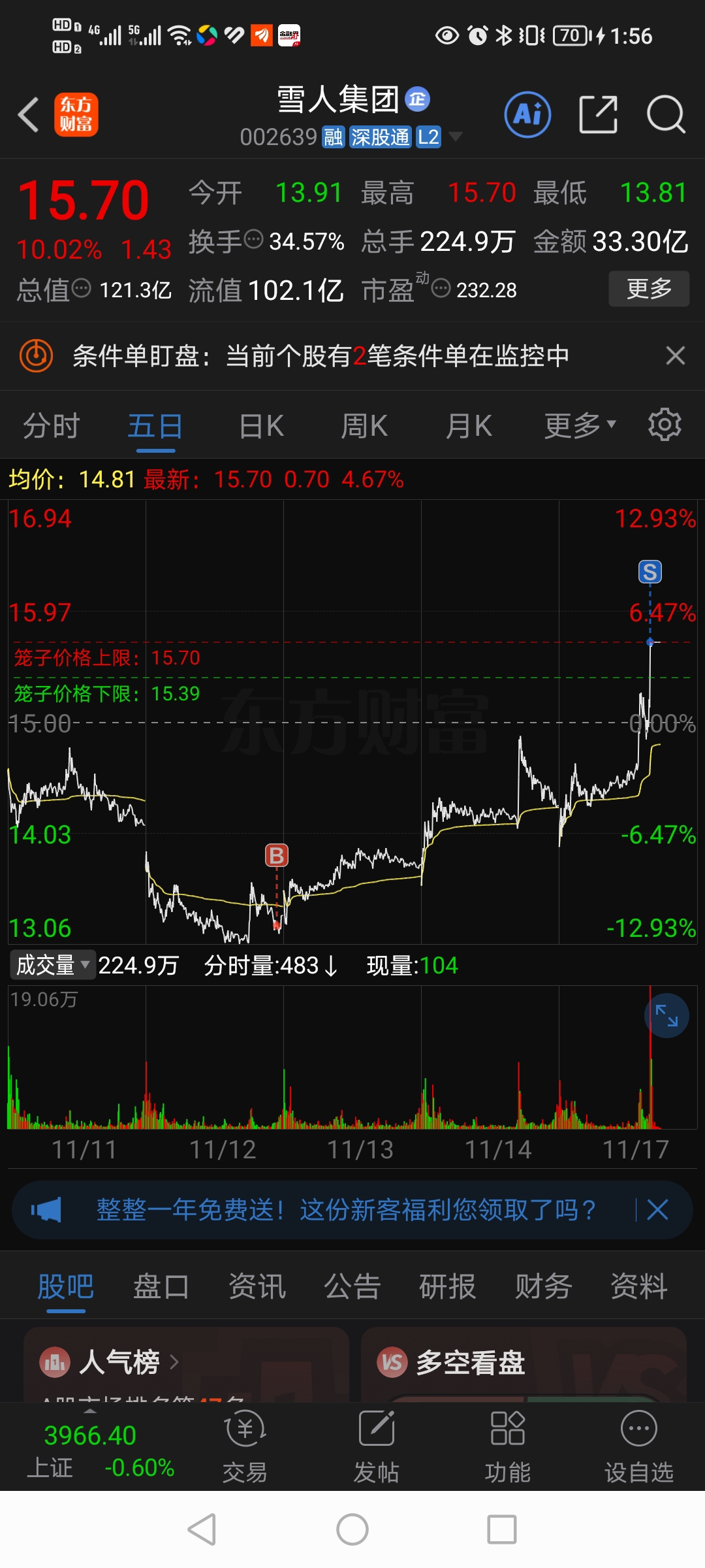 $雪人集团(SZ002639)$ 幸福来的太突然了,午睡醒了它涨停成交了