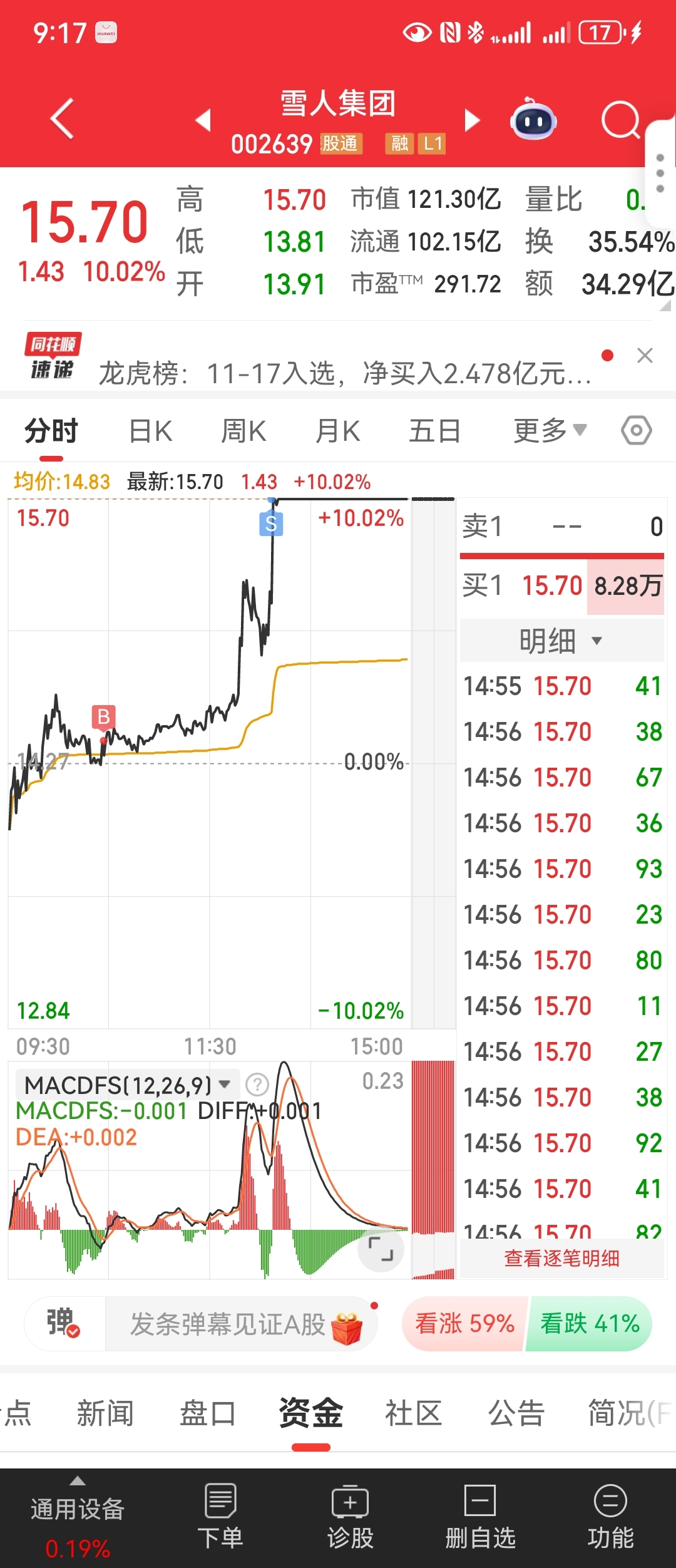 $雪人集团(SZ002639)$ 今天上午挂涨停纯属意外,没想到下午真涨停了