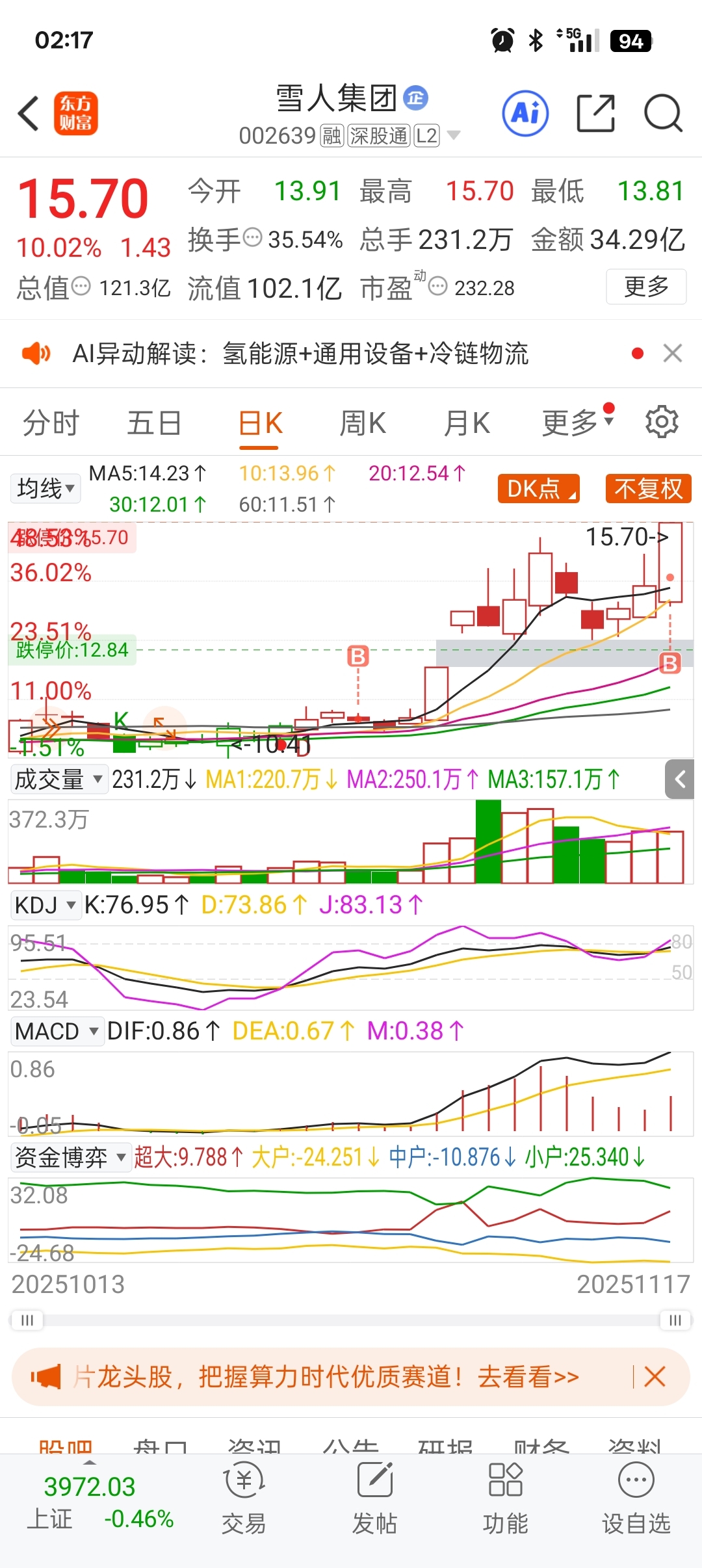 $雪人集团(SZ002639)$ 回血了,要求不高3板就成