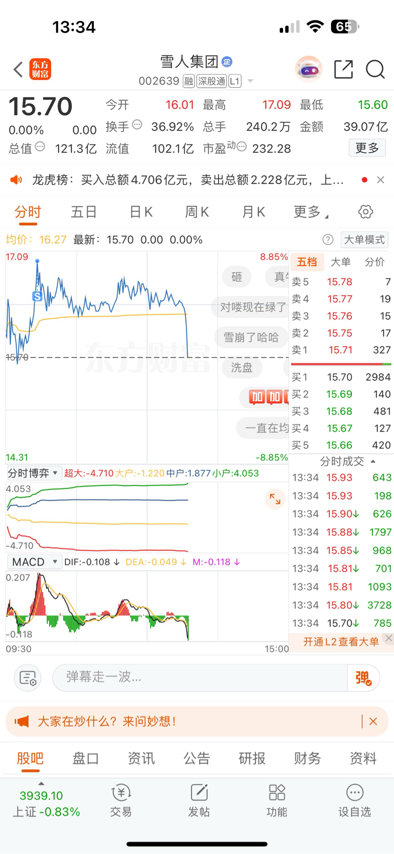 $雪人集团(SZ002639)$