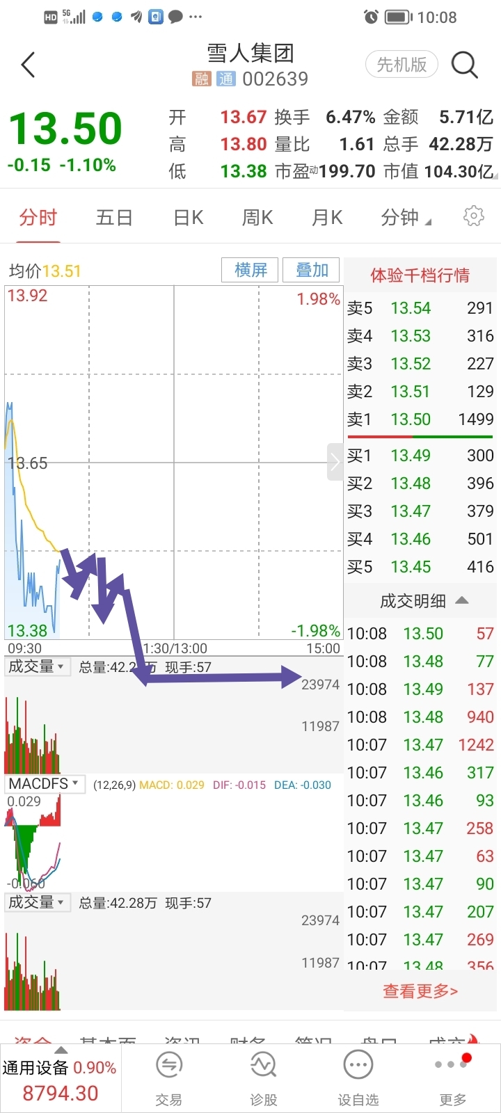 $雪人集团(SZ002639)$ 这种无量拉直线,大概率哪来回哪去。。。黄色均价线跟不上价格的反弹就是最有力的证明。
