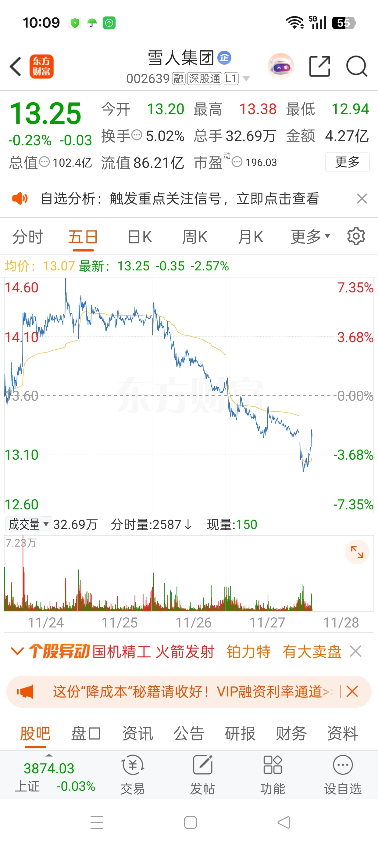 $雪人集团(SZ002639)$ 色,急拉缓跌,急跌也是缓跌!咋玩?