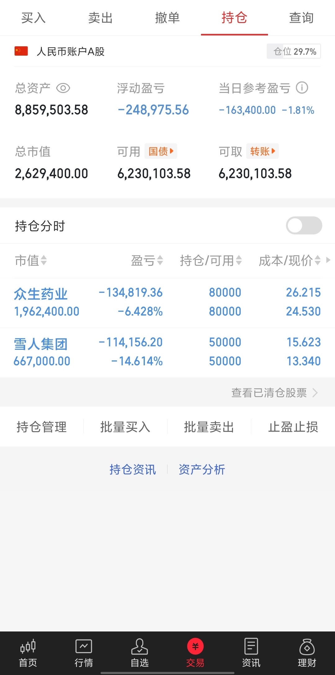 今日持仓:$雪人集团(SZ002639)$ $众生药业(SZ002317)$