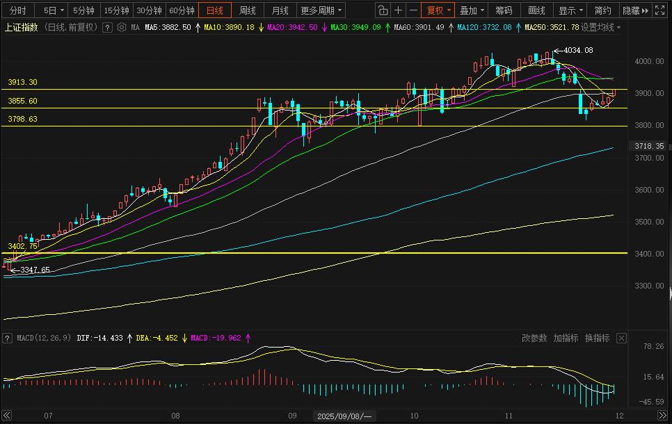 12月1日大盘收盘在3914点,处于目前3913至3798箱体区间上,站上10日线线,M A C D水下绿柱缩小,拐头向上!其实越到临界值变盘的担忧越焦虑。
