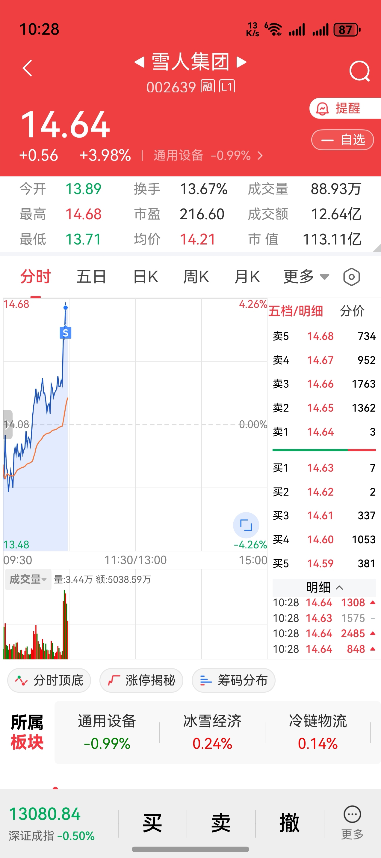 $雪人集团(SZ002639)$ 抬头一看,卖飞了