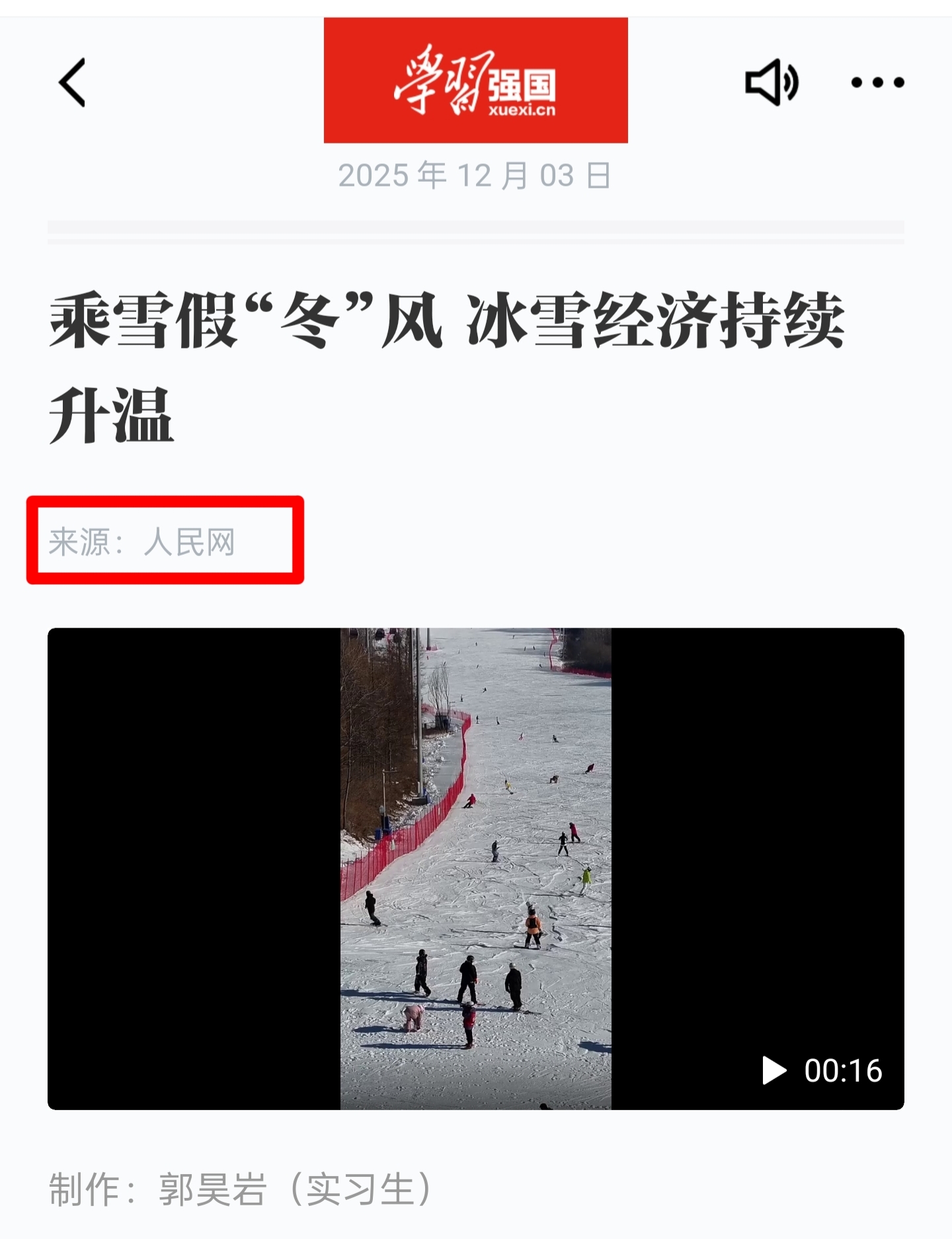 人民网:乘雪假“冬”风 冰雪经济持续升温
