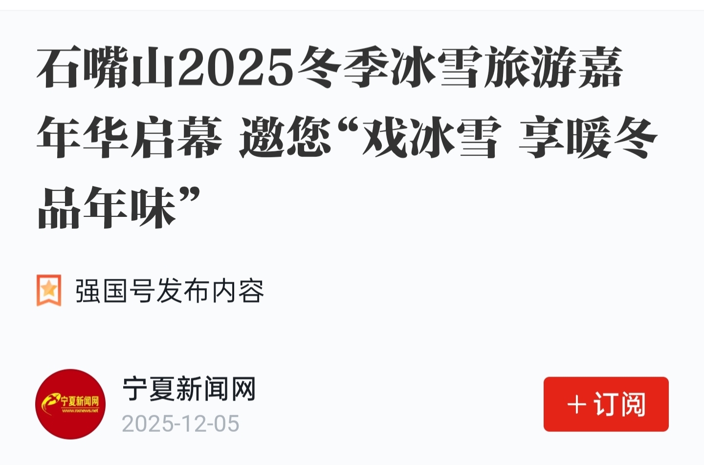 石嘴山2025冬季冰雪旅游嘉年华启幕 邀您“戏冰雪 享暖冬 品年味”