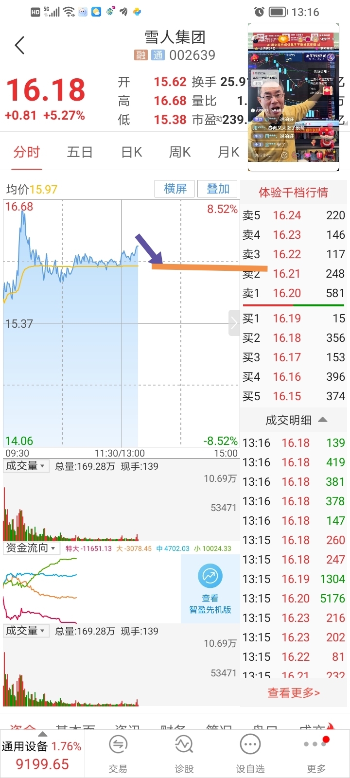 $雪人集团(SZ002639)$ 一哥再次提示,黄色均价线没有跟上,没有量能,谨慎,回踩。一点都没有向上。