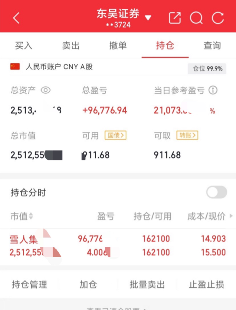 (12.08)复盘分析目前资金:251万当日参考盈亏:+21073目前持仓:雪人