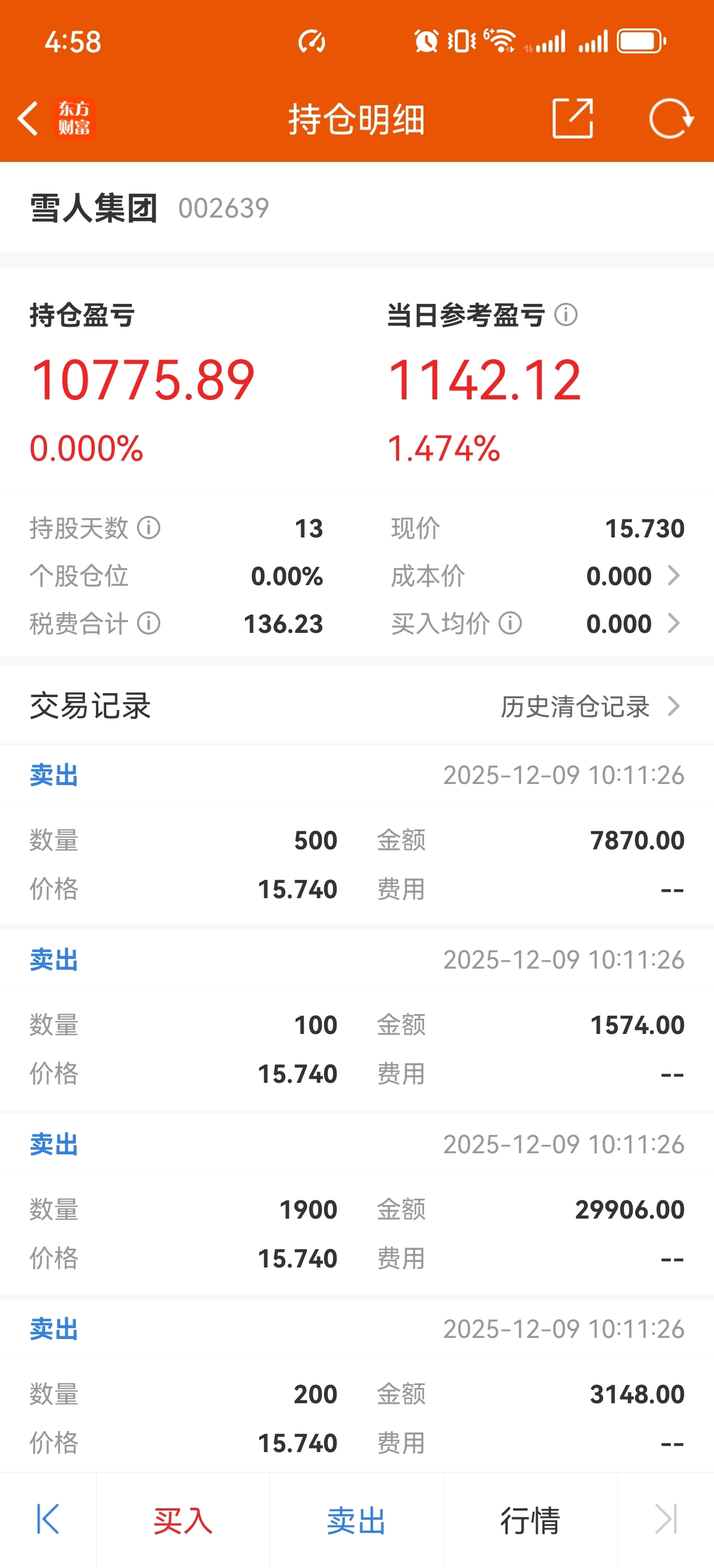 $雪人集团(SZ002639)$ 清仓啦,没卖到高点,怕卖飞,一直砸就出了