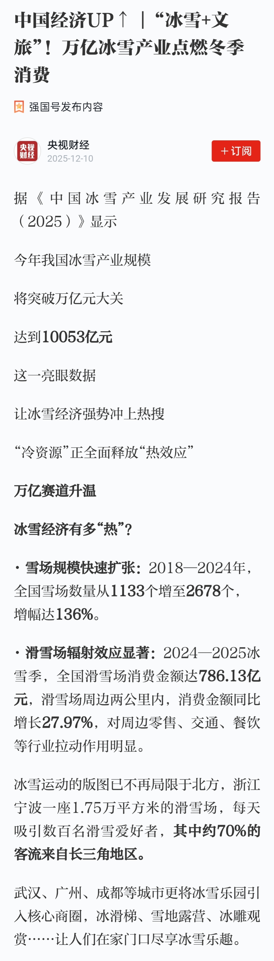 央视财经:中国经济UP↑ | “冰雪+文旅”!万亿冰雪产业点燃冬季消费