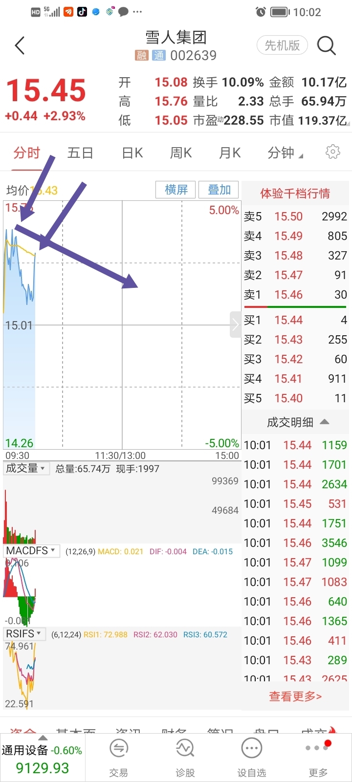 $雪人集团(SZ002639)$ 恰好黄色均价线,急拉慢跌。诱多