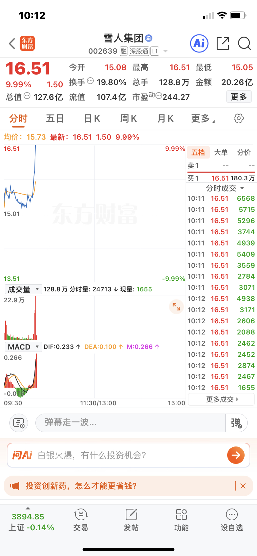 $雪人集团(SZ002639)$ 反包了,阳哥少赚几个铜板,你们呢?