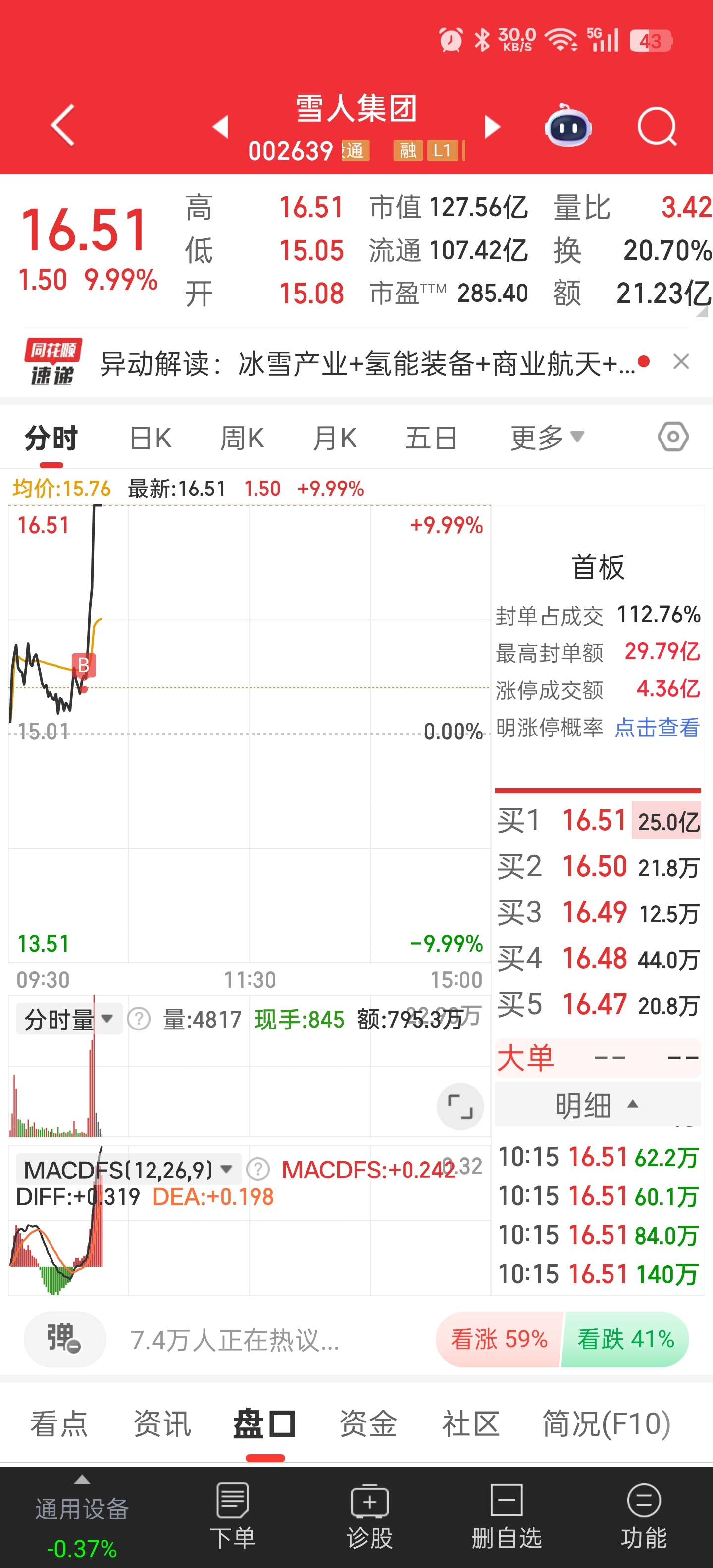 $雪人集团(SZ002639)$ 今天给兄弟们点火,够意思吧,