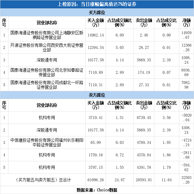 多主力现身龙虎榜,雪人集团涨停(12-11)