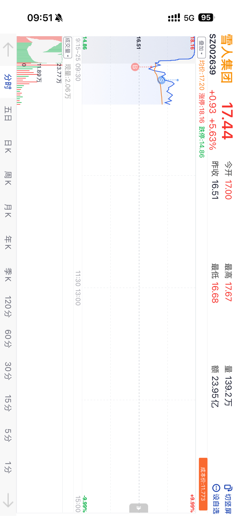 $雪人集团(SZ002639)$ 买在最低,卖在最高,成功T