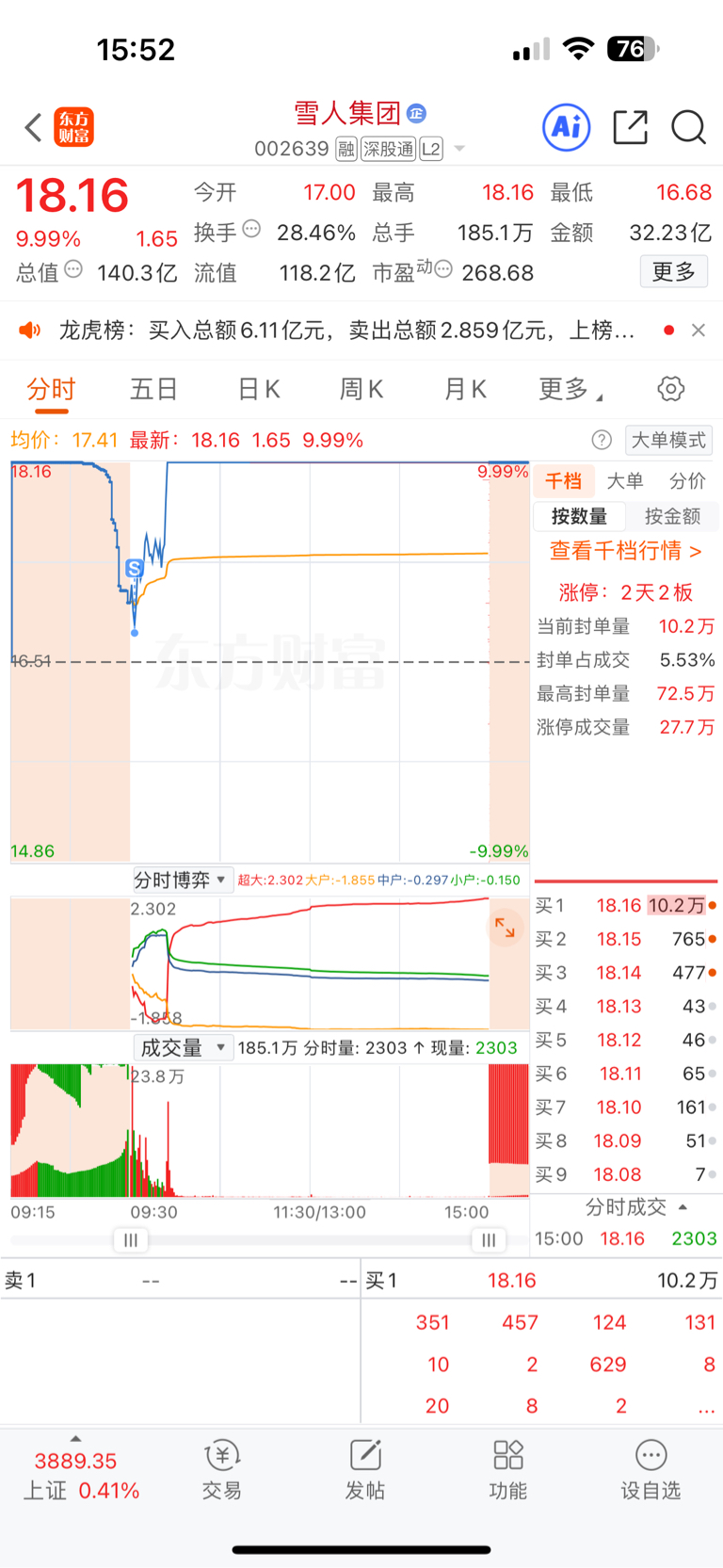 $雪人集团(SZ002639)$ 今天的操作真是失败 手里拿着东百还是被影响了