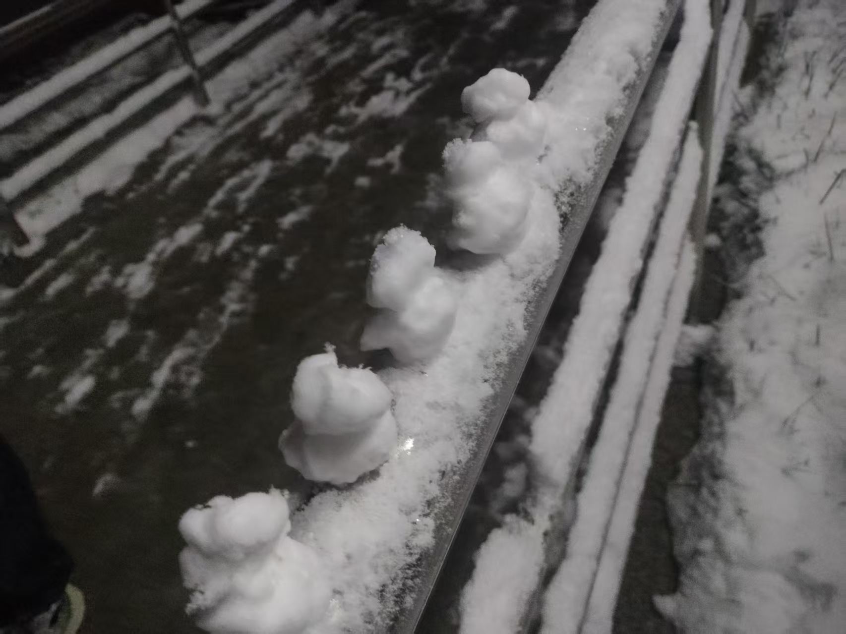 2025山东第一场雪,堆了五个雪人,预祝五连板,雪人我爱你。