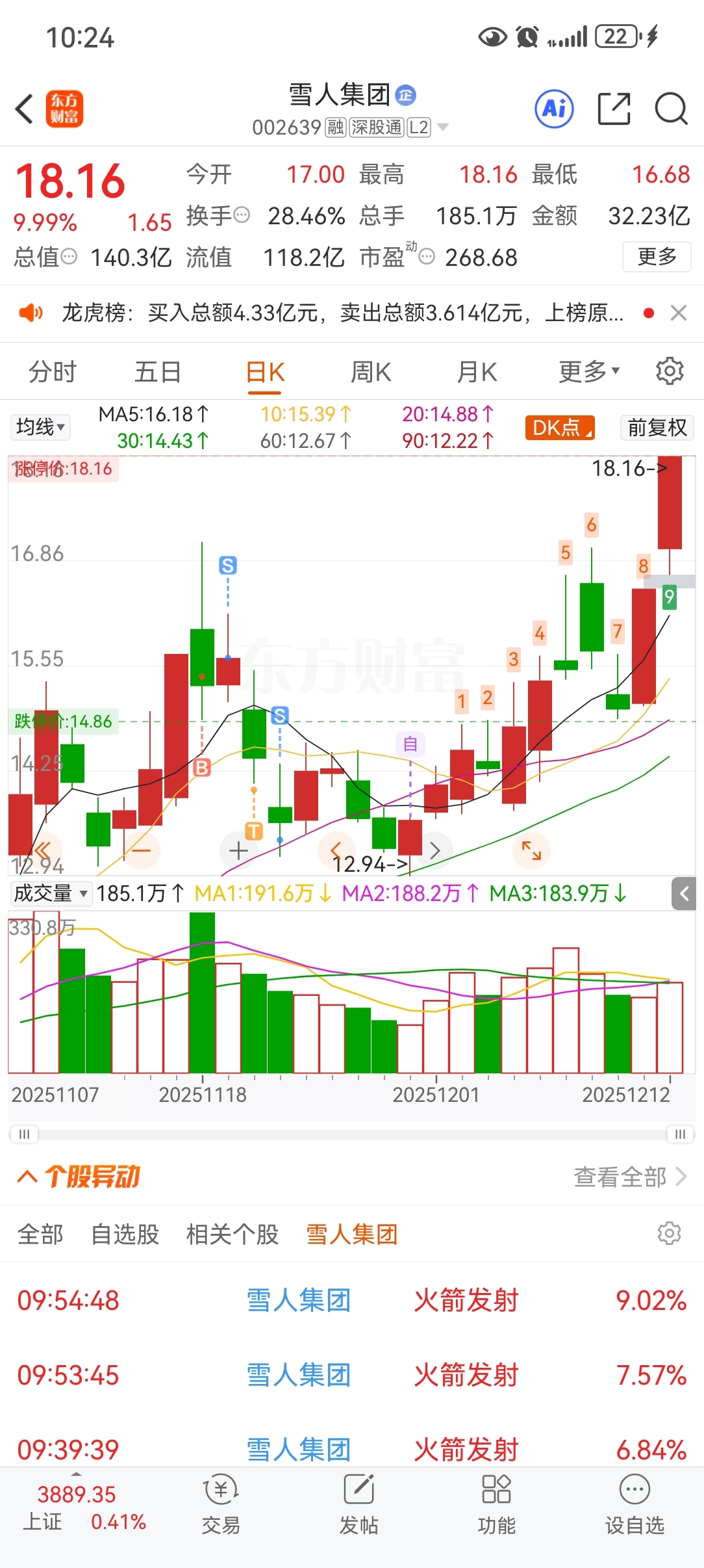 $雪人集团(SZ002639)$ 这票妈的破历史新高了。把我洗了,请问各位大神是怎么拿得住的?有什么心法传授给我这颗韭菜