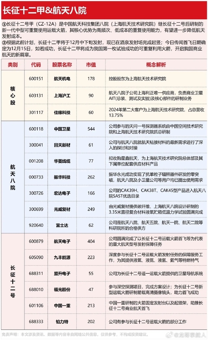 风口长征十二号甲(CZ-12A)预计于2025年12月17日09:54-12:14在酒泉卫星发射中心首飞,同步尝试一级火箭垂直回