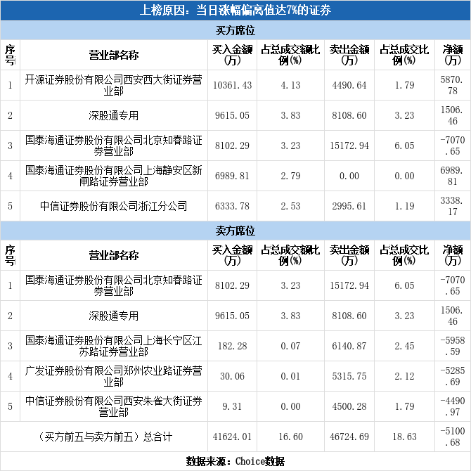 深股通现身龙虎榜,雪人集团涨停(12-15)