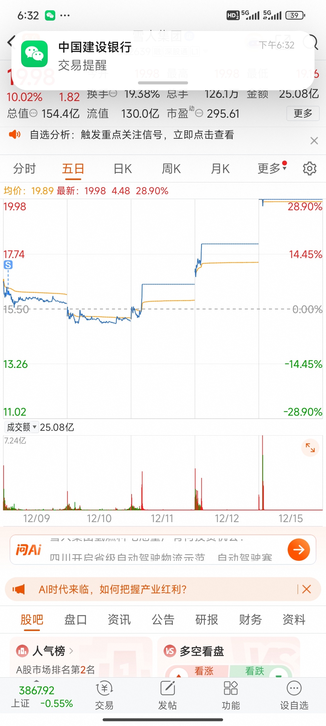 $雪人集团(SZ002639)$ #收盘点评# 迷迷糊糊梦见老婆让我买雪人股份,之前也没关注过,抱着试试的心态。买了一天之后就卖掉了。