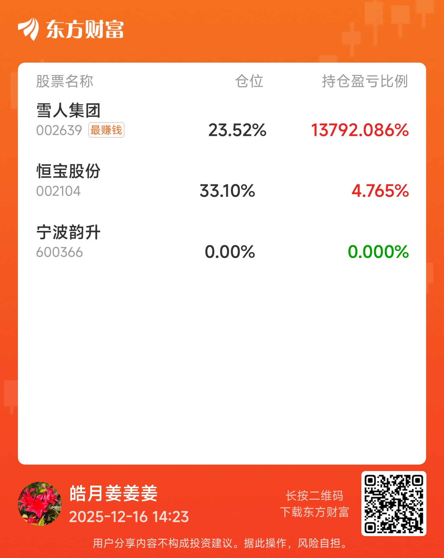 $雪人集团(SZ002639)$ 利润够厚,再补点雪人。。