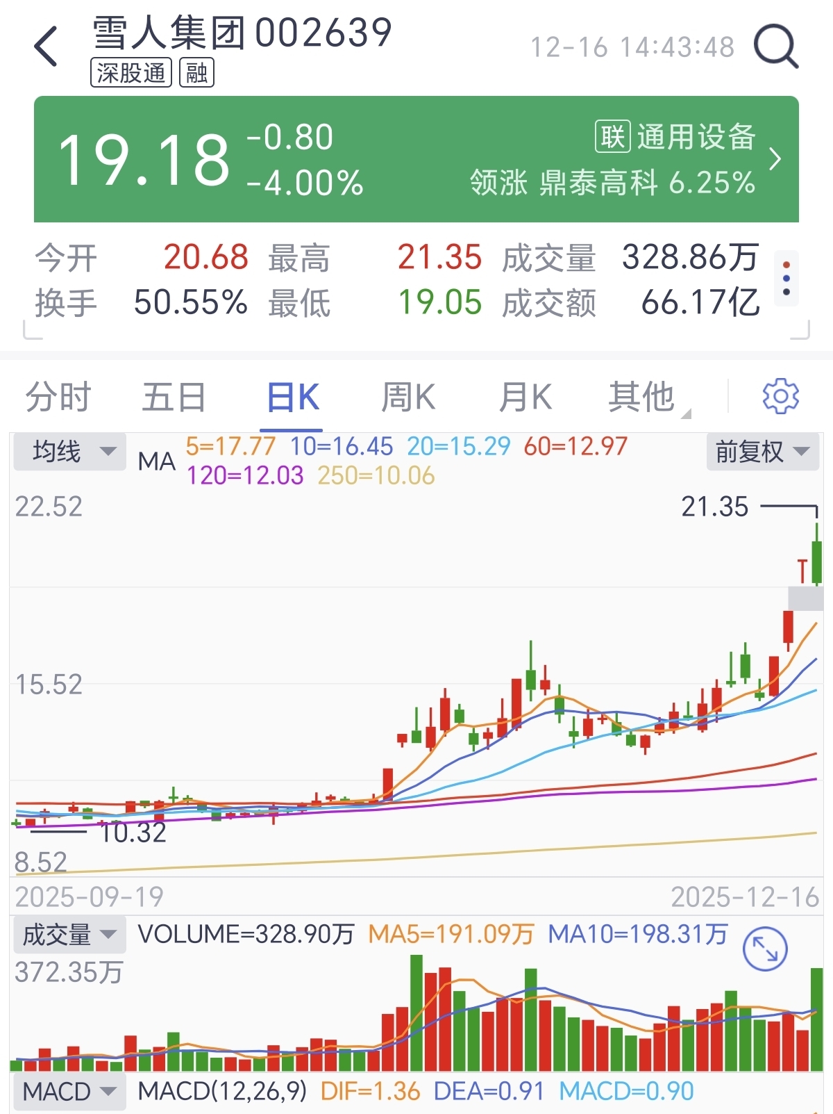 $雪人集团(SZ002639)$ 巨量大阴,主力出货坚决,散户别碰!后市不乐观!赶紧跑!