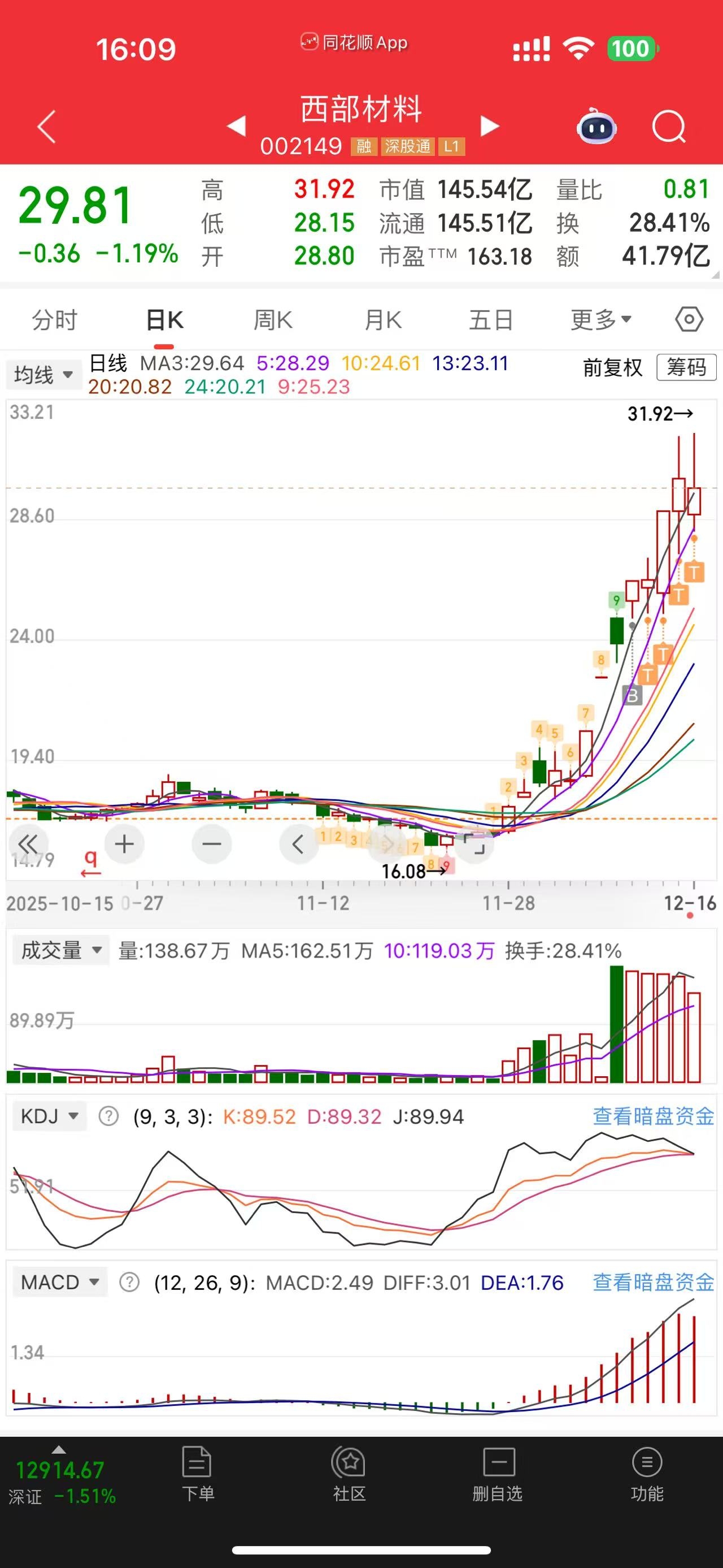 知行合一,跟昨日说的一样,继续t的西部,减c了其他$雪人集团(SZ002639)$ $航天发展(SZ000547)$
