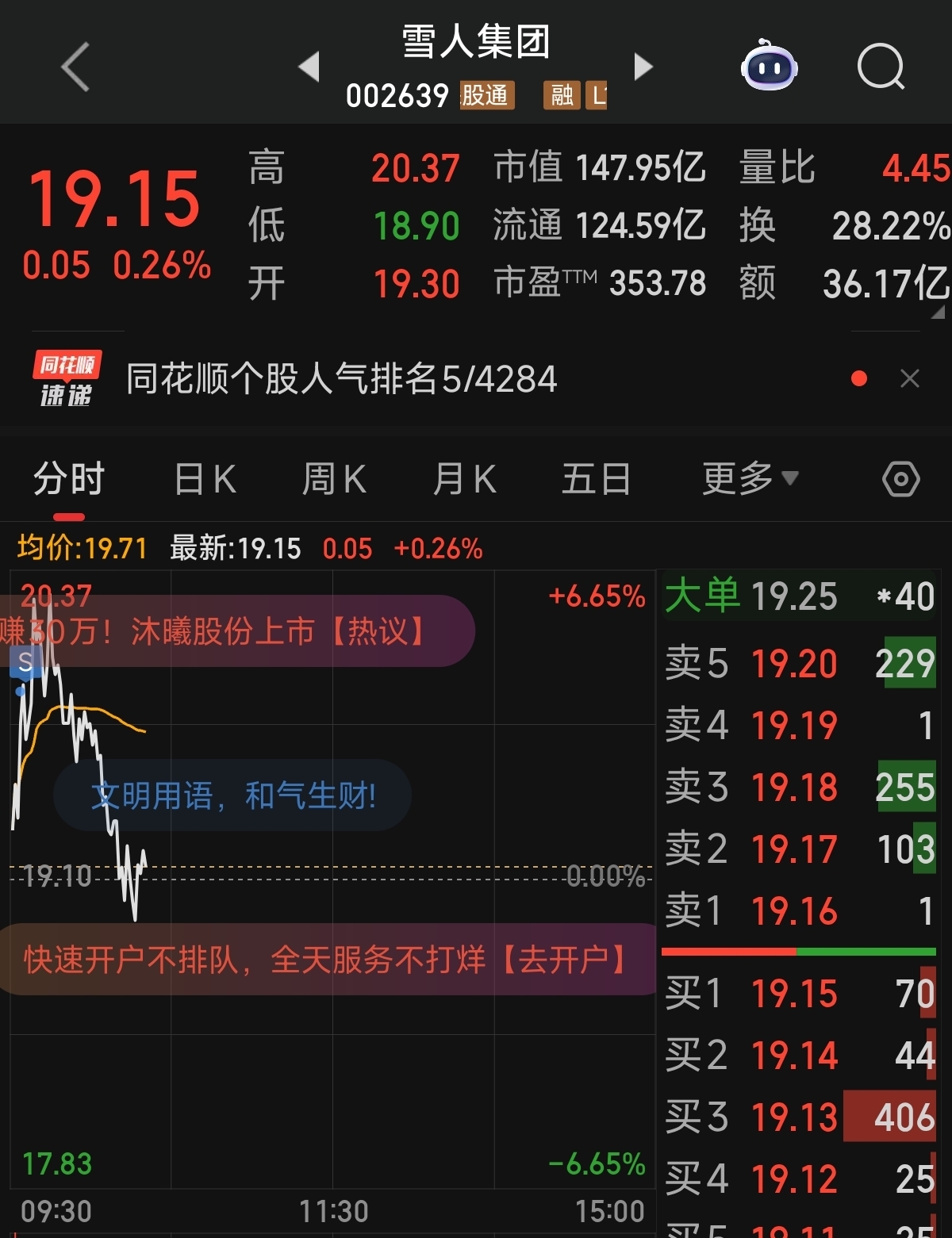 $雪人集团(SZ002639)$ 还行,小亏出局可以接受