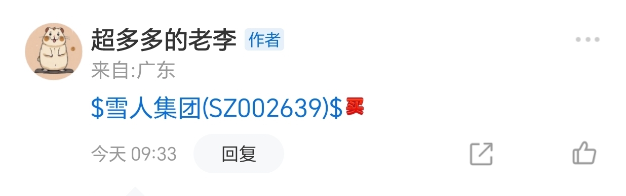 今日建仓:$雪人集团(SZ002639)$