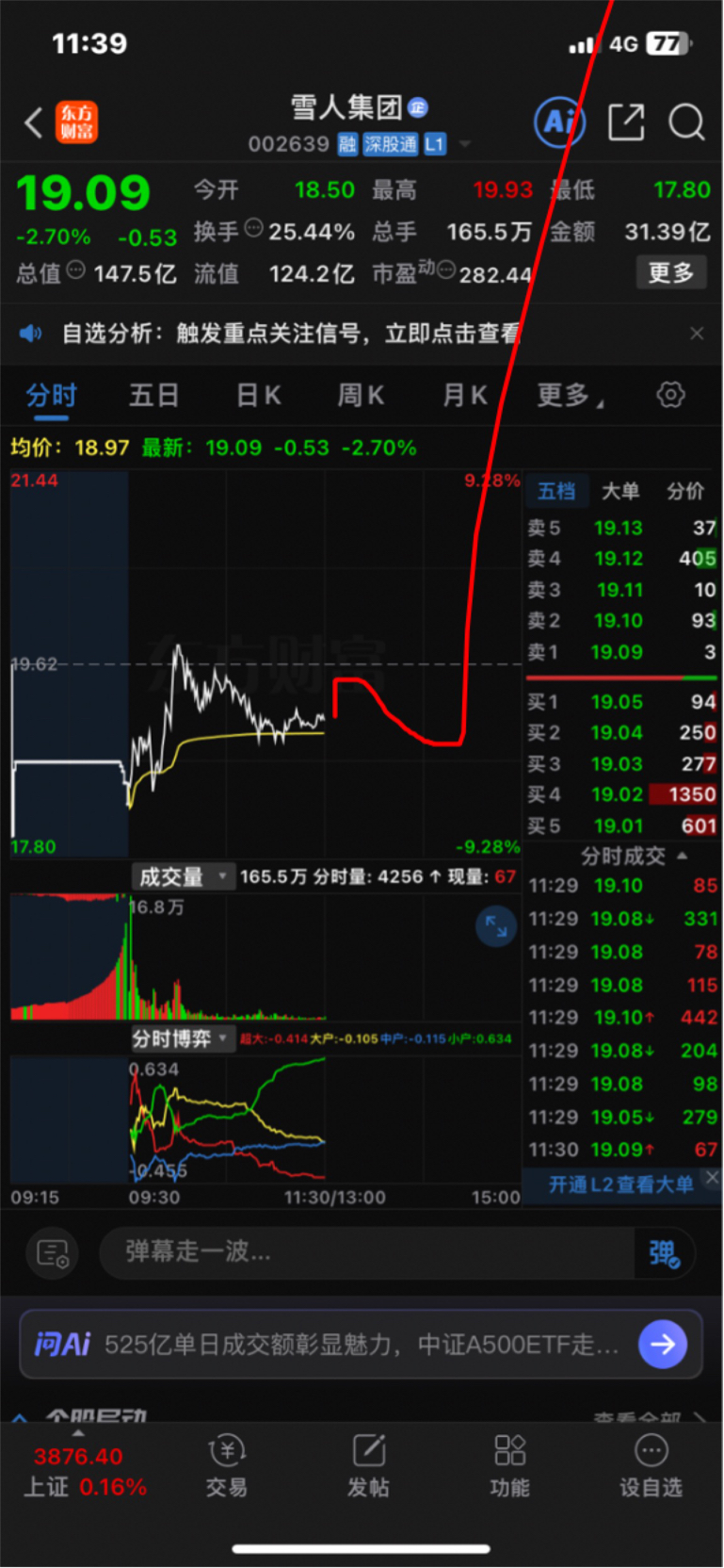 $雪人集团(SZ002639)$ 尾盘狂拉