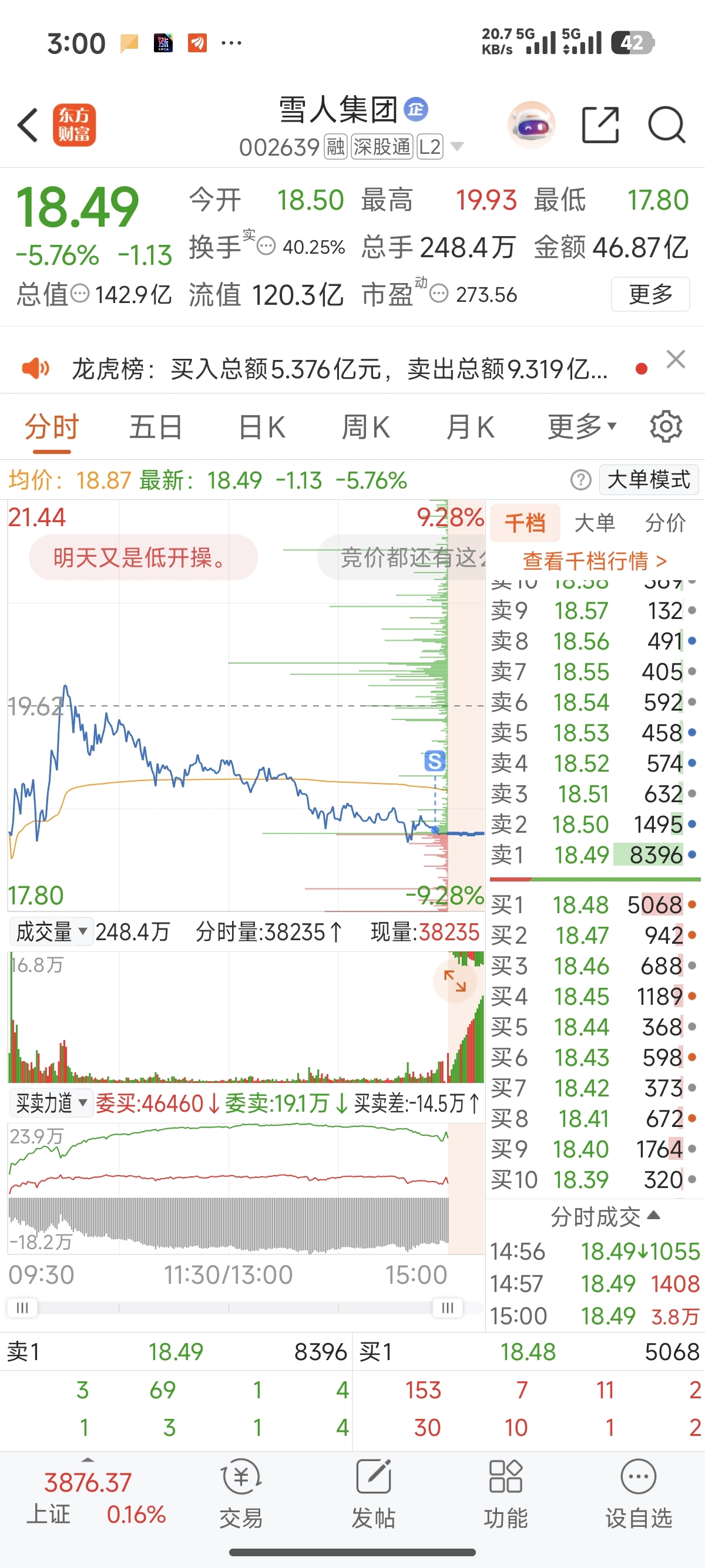 $雪人集团(SZ002639)$ 格局了两天,你这样对我,$永辉超市(SH601933)$ 我来了永辉
