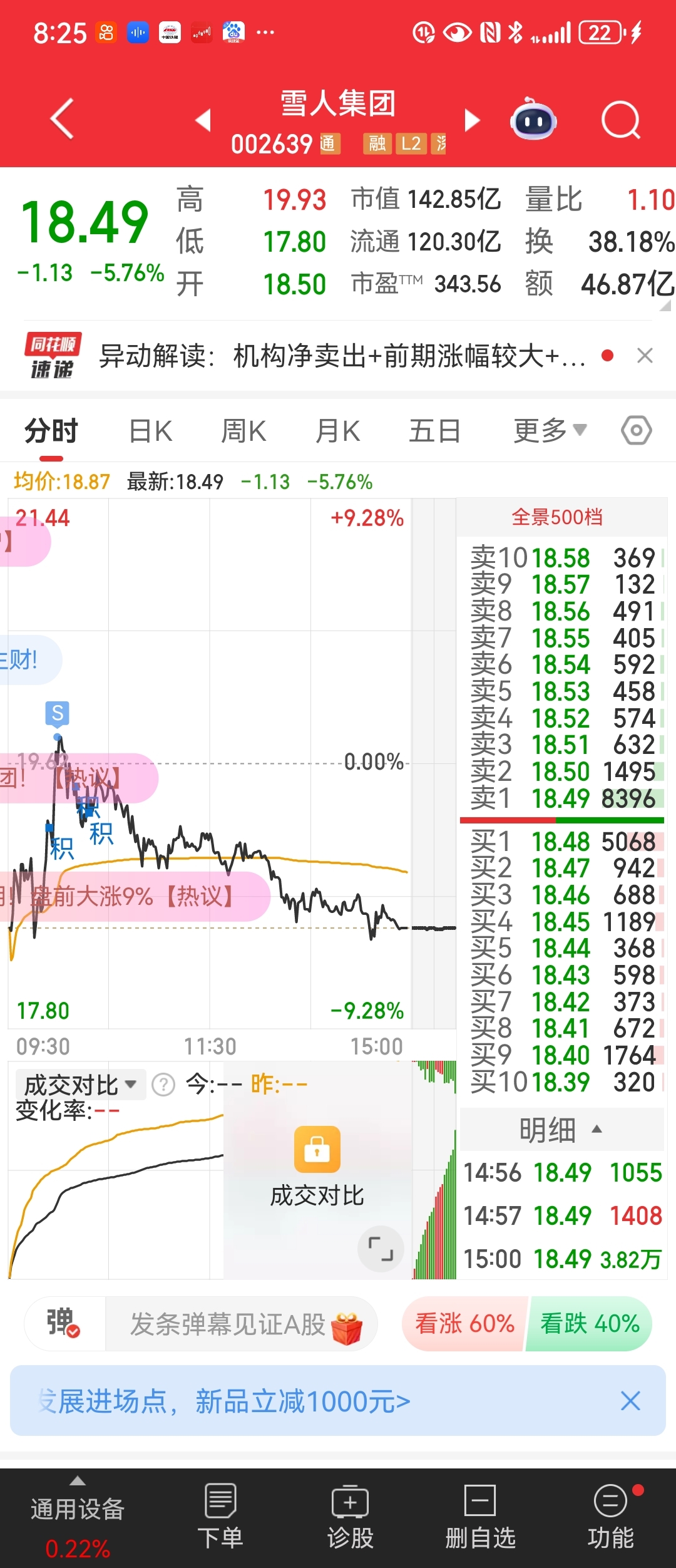 $雪人集团(SZ002639)$ 还好没贪,红盘就卖