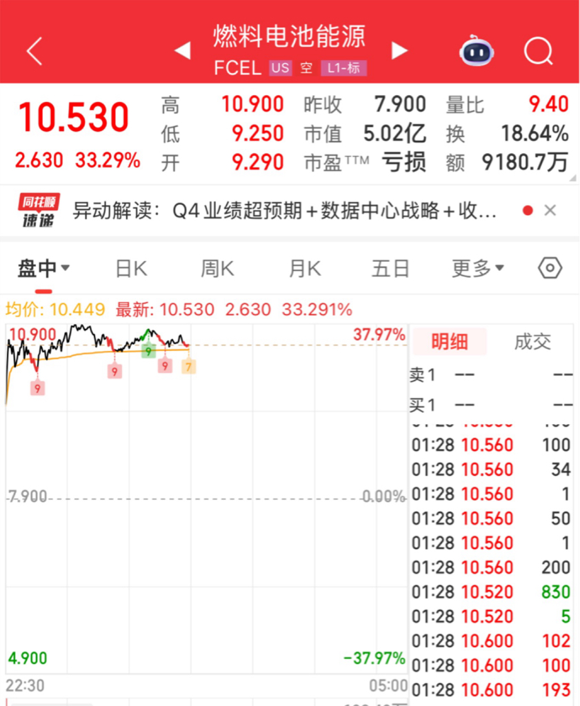 美股氢能源燃料电池明天感觉竞价要抢筹呢