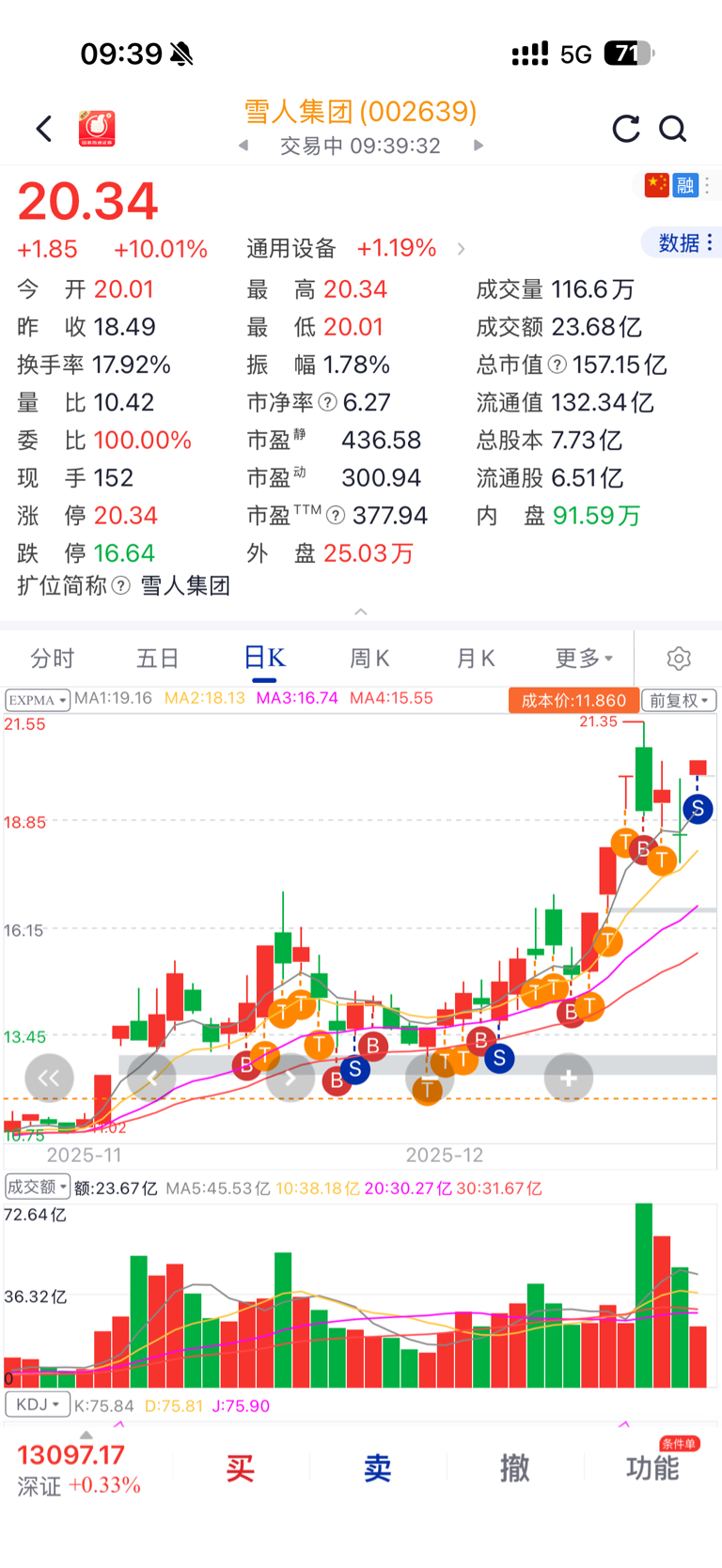 $雪人集团(SZ002639)$ 初升段疯狂做T,丰厚浮盈垫底,主升段进退有度,宠辱不惊,待主升浪到达预期止盈,静待第四浪回调17.09再买进,正所谓他强随他强,清风拂山岗。