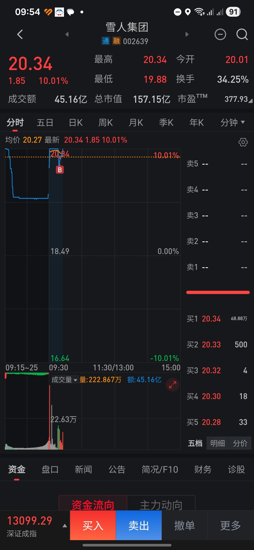 $雪人集团(SZ002639)$ 今天开的高,这个位置炸板补量而已